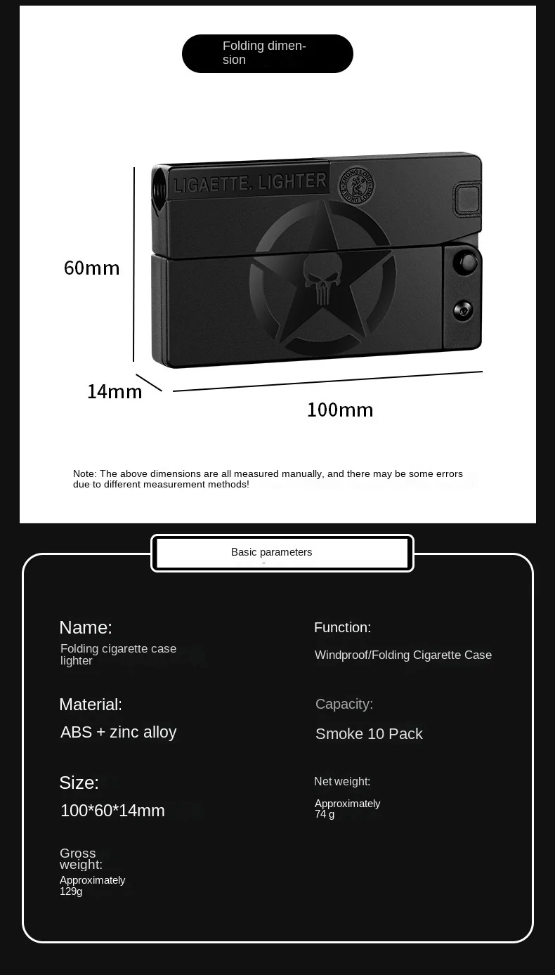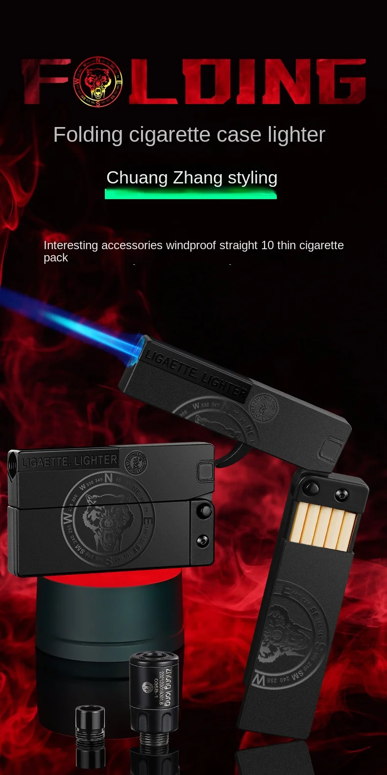 Foldable Jet Flame Lighter with Cigarette Case Box