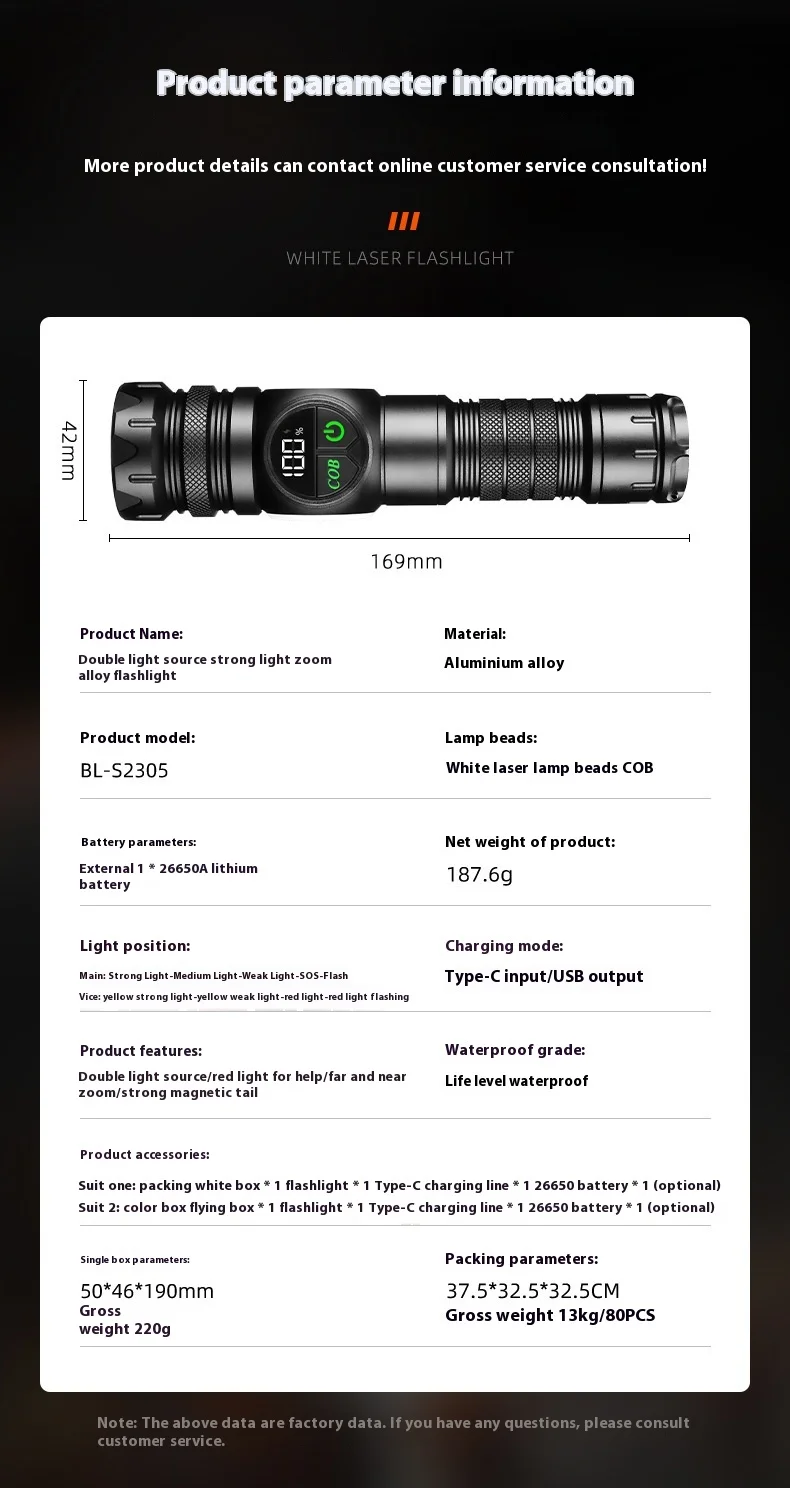 High Power Zoomable Flashlight